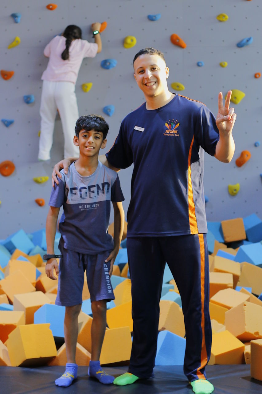 Celebrate any special occasion at Fly Zone Park with our exciting package! Whether it’s an anniversary, baby shower, gender reveal, cake smash, engagement, or retirement party, we’ve got you covered. Enjoy exclusive access to our decorated party room, thrilling jump time with your loved ones, a dedicated host, delicious food, and photo ops. Book now at +971 50 660 6300 or info@flyzoone.com for an unforgettable event!