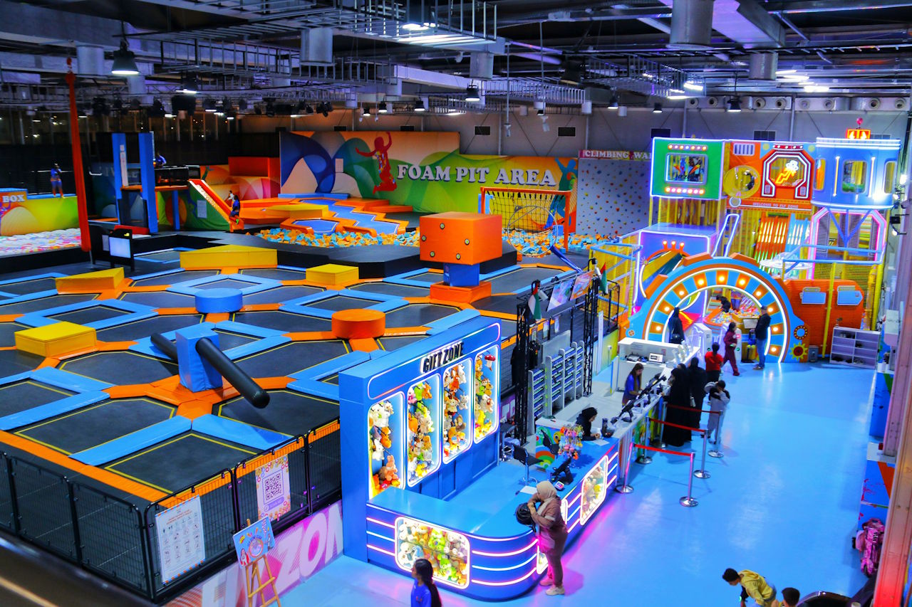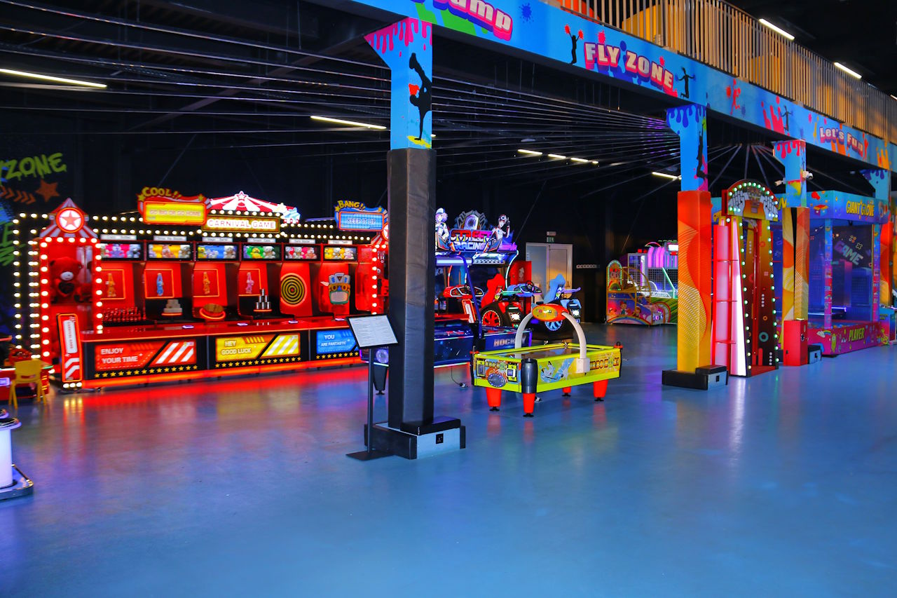 Overlooking the vibrant play arena, Fly Zone Café offers a refined retreat where comfort meets sophistication. Designed for parents and guests who appreciate quality, it’s the perfect setting to relax while enjoying a full panoramic view of the excitement below.