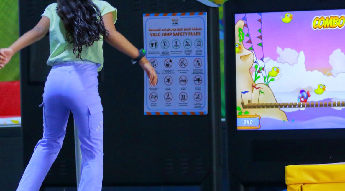 Interacting with the screen seeing yourself as a game character is a great way to entertain kids and adults! As a camera is tracking their jump movements, users become part of the games projected on the wall. People have to catch things flying around by jumping and hitting the air...